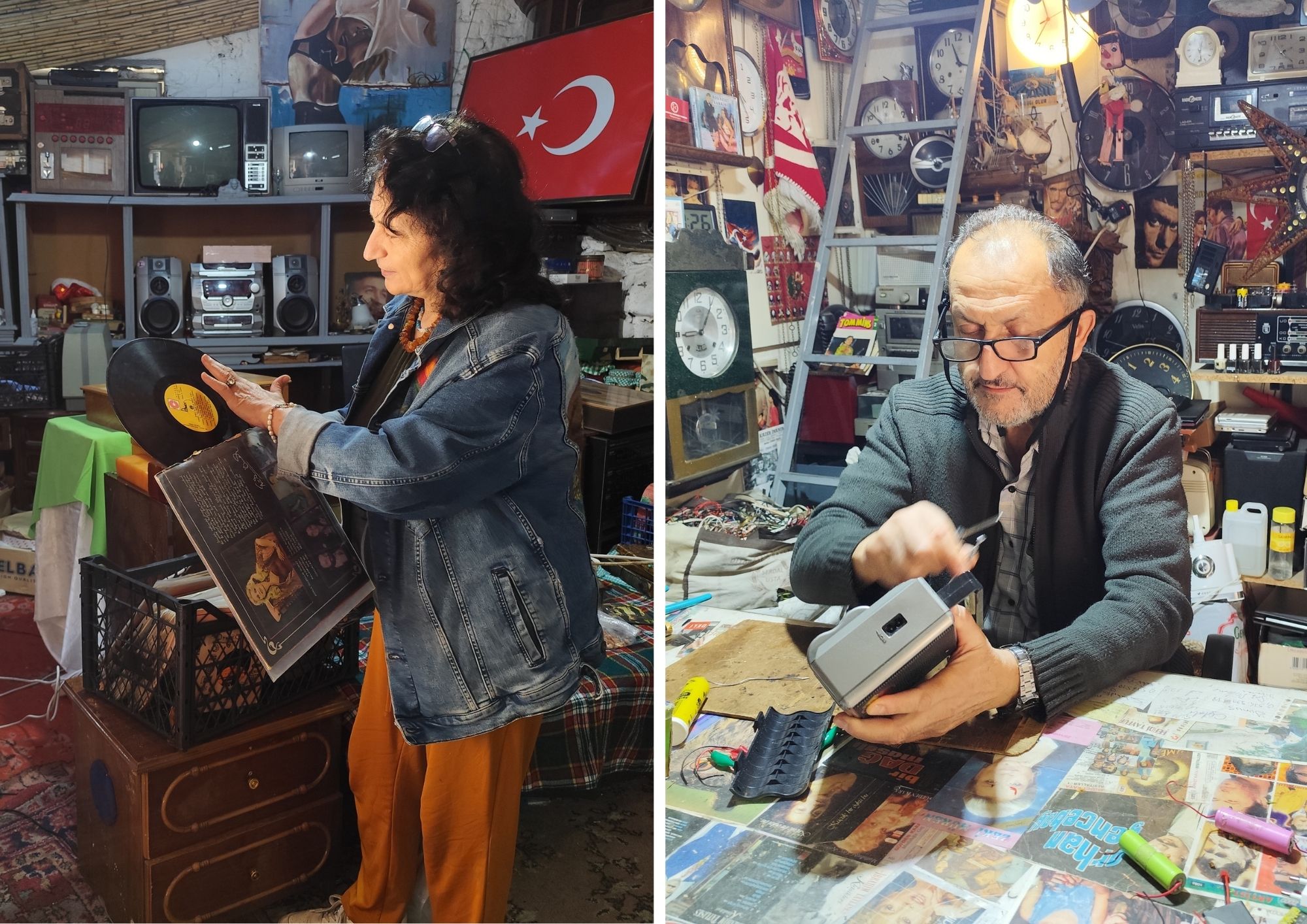 Nostalji ve geçmişin sesi mezatta öne çıkan ürünlerden biri plaklar ve gramofonlar oldu. Aksoy, 1960 ve 1970’lerin plaklarındaki frekansların, nostaljik bir deneyim sunduğunu ve insan doğasına iyi geldiğini söylüyor. Eski elektronik eşyaların tamirini yapan Mustafa Demirel ise, bu eşyaların duygusal değerini somut bir hikayeyle gözler önüne seriyor: “Geçenlerde İzmirli bir ailenin bir pikabını yaptım. Tamir olduktan sonra kendilerine burada dinlettim. Dinledikten sonra hepsi ağladılar. Annelerini ve babalarını özlemişler. Onlarla dinliyorlarmış küçükken. Çok memnun kaldılar.” Demirel, bu sektörün seven bir kitleye hitap ettiğini ve yaptığı işin, “sevgi işi” olduğunu da ekliyor.