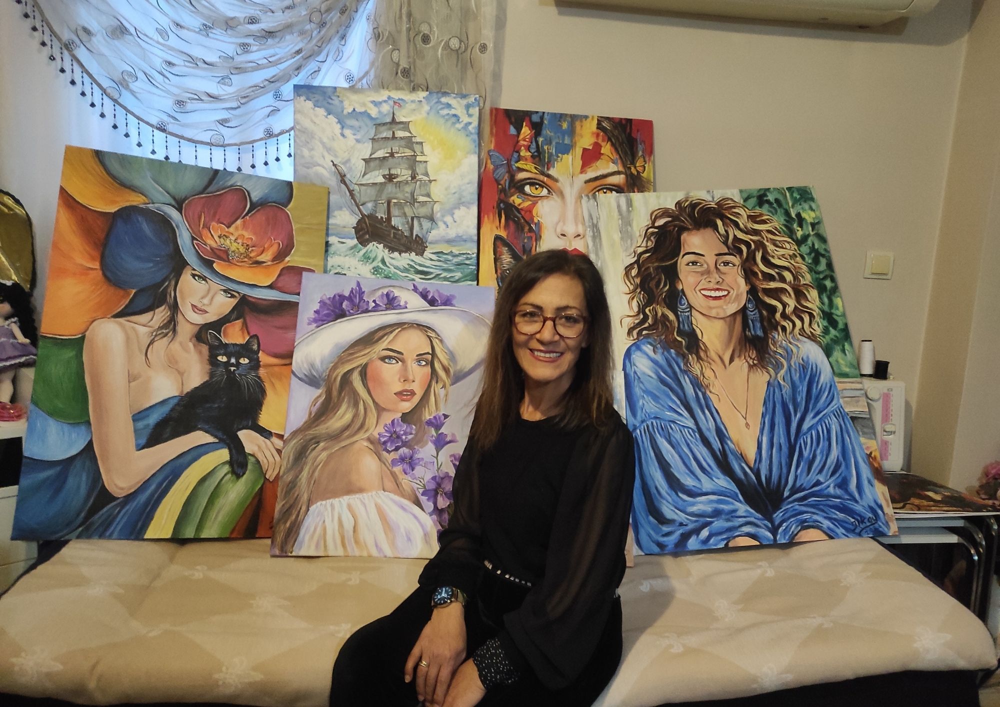 Lise yıllarından kalma teknik bilgisi ve geçmişte oğlunun okuluna yaptığı duvar resimleri tecrübesiyle fırçayı yeniden eline alan Tayyar, “İlk tuvalimi yakın bir arkadaşım, ilk fırçalarımı ve boyalarımı da kızımın öğretmeni hediye etti. O dönem maddi zorluklarım vardı ve bu durum beni çok duygulandırmıştı.” dedi.