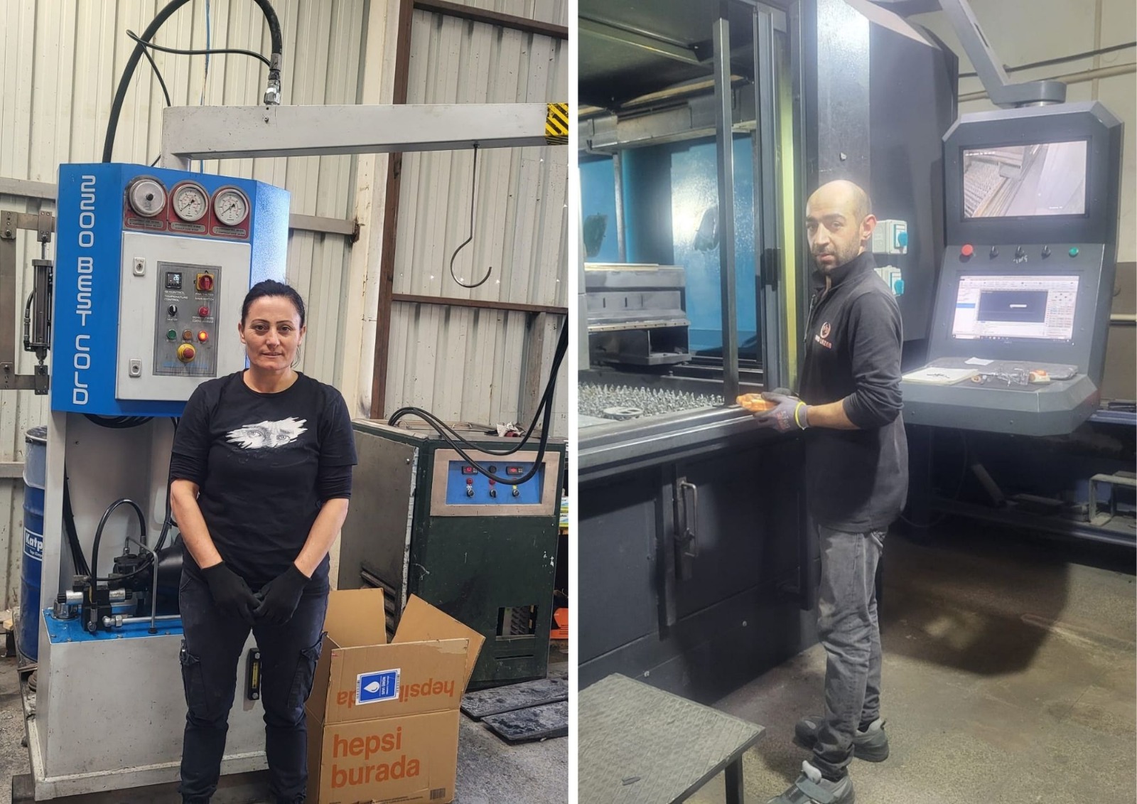 CNC Dik İşleme operatörü Bahtiyar Çavdar, işin eskiden manuel freze tezgahlarında yapıldığını, şimdiki tezgahların ise otomatik ve programlanabilir olduğunu belirtti. Çavdar, teknolojinin ilerlemesine rağmen otomasyonun rehavete yol açmaması gerektiğini ve KKD kullanımına her zaman önem verilmesi gerektiğini ifade etti. CNC Fiber Lazer Kesim makinesi operatörü Serdar Küçükdere ise demir sac levhaları tavan vinci yardımıyla makineye yerleştirip kesim yaptığını anlattı. İş yerlerinde İSG eğitimlerinin, sağlık tetkiklerinin ve makinelerin yıllık periyodik bakımlarının düzenli yapıldığını belirten Küçükdere, KKD ekipmanlarının işveren tarafından zimmetlendiğini ekledi. Küçükdere, tüm çalışanların KKD kullanımına özen göstermesinin altını çizerek şu uyarıda bulundu: "Küçük bir ihmal, telafisi imkansız sonuçlar doğurabilir."