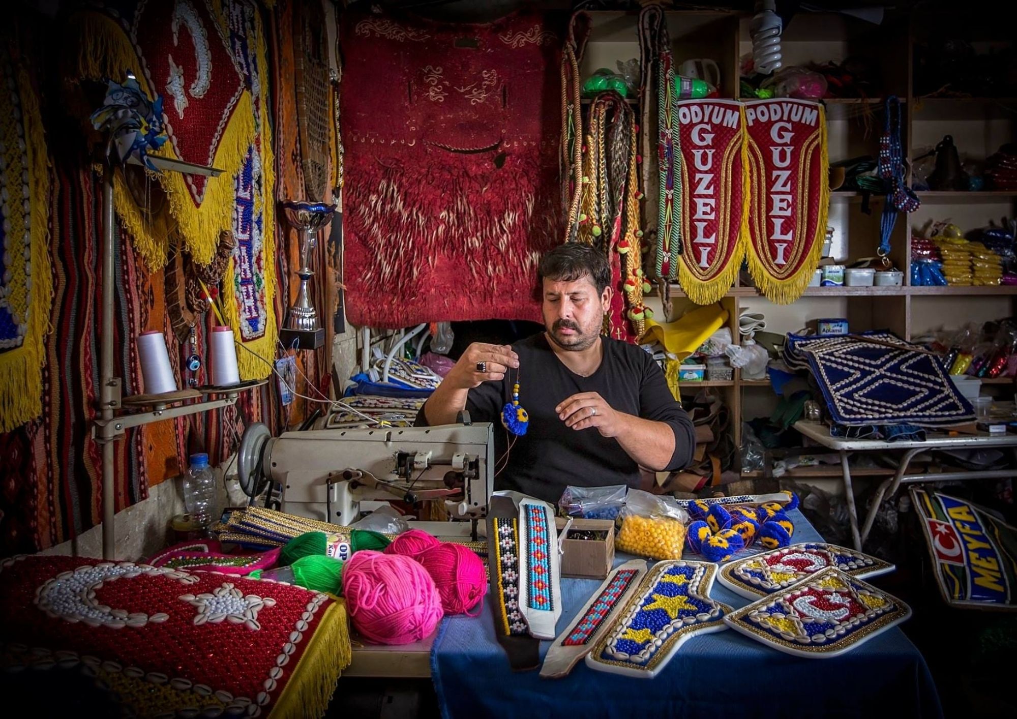 Eskiden bu çarşıda birkaç saraç olurdu, semercilerle birlikte herkesin bir işi vardı. O zaman atlara, develere koşum, paldın, aşıtma yapılırdı. Şimdi traktörler çıktı, işler değişti. Ama biz yine de deriyle uğraşmayı bırakmadık. Develer için özel koşum takımları, havutlar yapıyoruz. İşin şekli değişti ama emeğin değeri değişmedi.